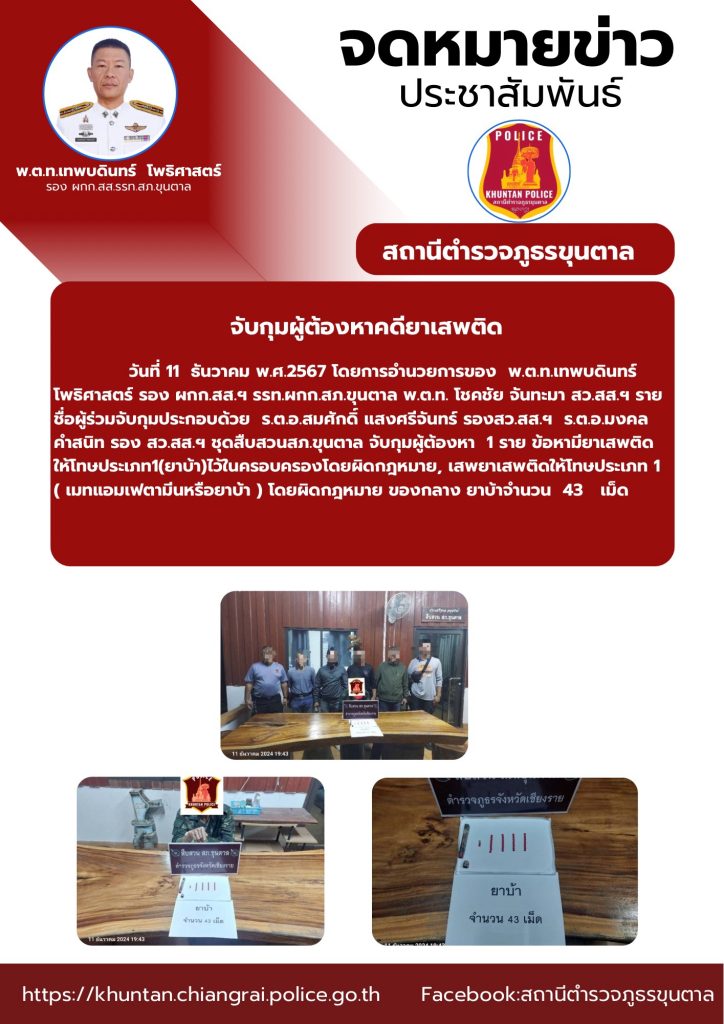 จับกุมผู้ต้องหาคดียาเสพติด 11 ธันวาคม 2567 โดย admin / ข่าวประชาสัมพันธ์,งานสืบสวน ธ.ค.67 จำนวนคนดู: 32 FacebookFacebookXXLINELine