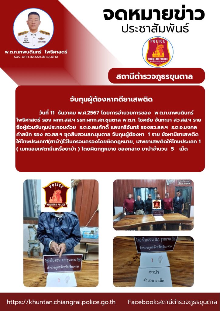 จับกุมผู้ต้องหาคดียาเสพติด 12 ธันวาคม 2567 โดย admin / ข่าวประชาสัมพันธ์,งานสืบสวน ธ.ค.67 จำนวนคนดู: 28 FacebookFacebookXXLINELine