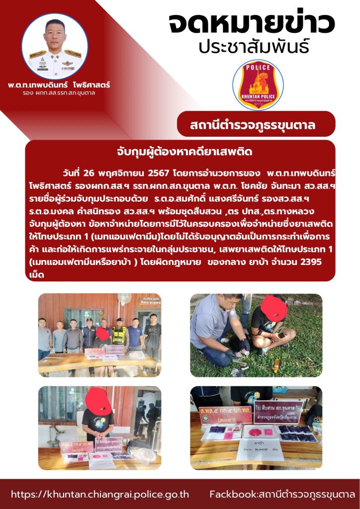 จับกุมผู้ต้องหาคดียาเสพติด 26 พฤศจิกายน 2567 โดย admin / ข่าวประชาสัมพันธ์,งานสืบสวน พ.ย. 67 จำนวนคนดู: 26 FacebookFacebookXXLINELine