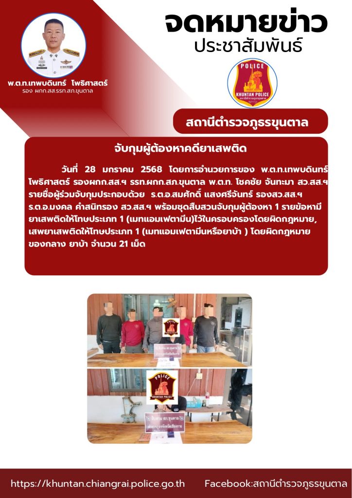 จับกุมผู้ต้องหาคดียาเสพติด 28 มกราคม 2568 โดย admin / งานสืบสวน ม.ค.68 จำนวนคนดู: 20 FacebookFacebookXXLINELine