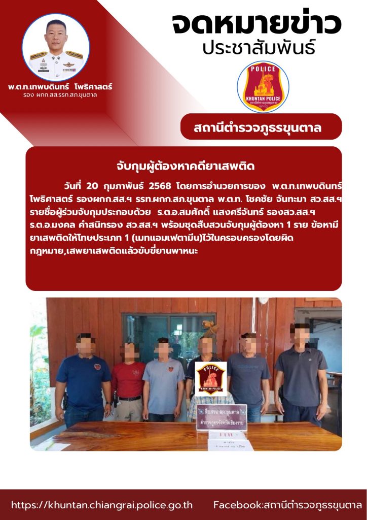 จับกุมผู้ต้องหาคดียาเสพติด 20 กุมภาพันธ์ 2568 โดย admin / งานสืบสวน ก.พ.68 จำนวนคนดู: 15 FacebookFacebookXXLINELine