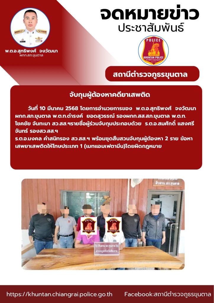 จับกุมผู้ต้องหาคดียาเสพติด 10 มีนาคม 2568 โดย admin / งานสืบสวน มี.ค.68 จำนวนคนดู: 16 FacebookFacebookXXLINELine