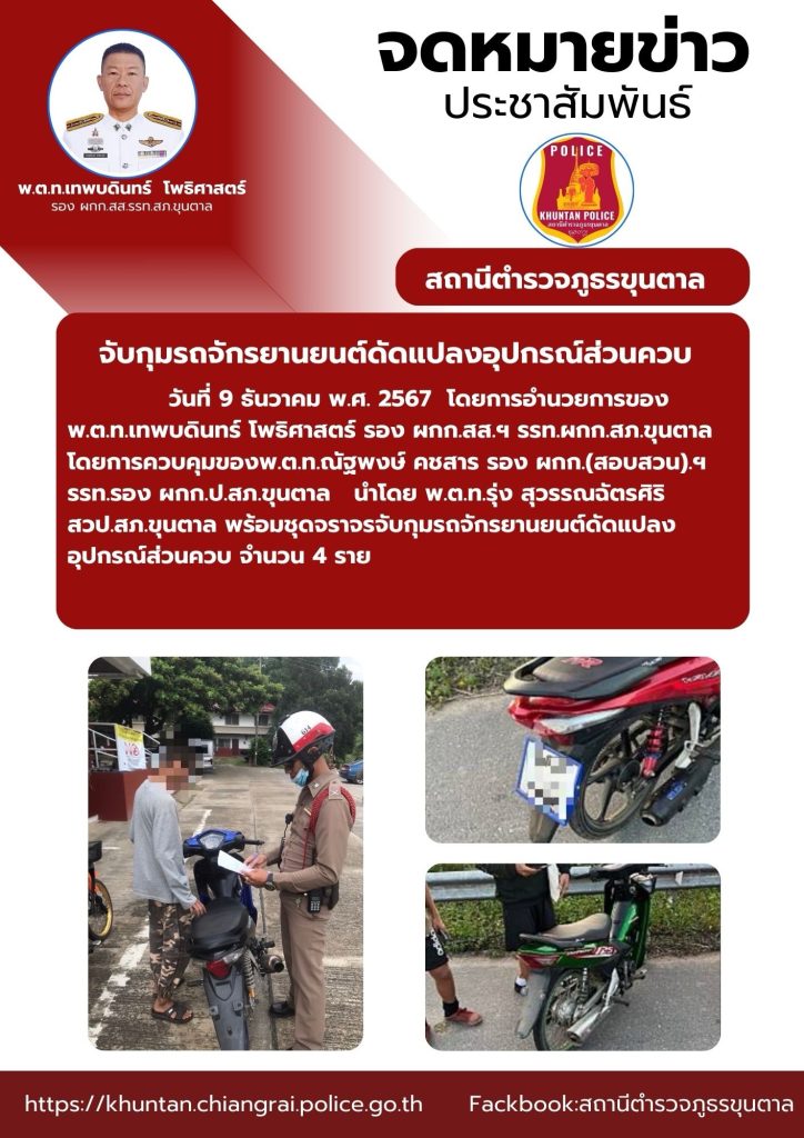 จับกุมรถจักรยานยนต์ดัดแปลงอุปกรณ์ส่วนควบ 9 ธันวาคม 2567 โดย admin / ข่าวประชาสัมพันธ์,งานจราจร ธ.ค.67 จำนวนคนดู: 39 FacebookFacebookXXLINELine