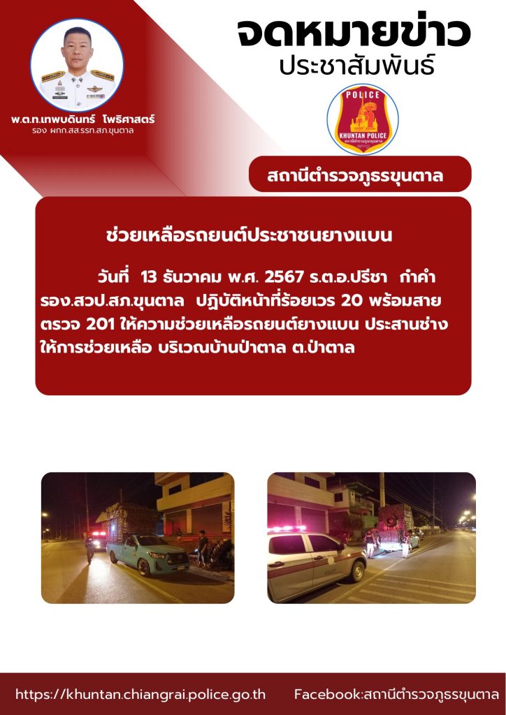 ช่วยเหลือรถยนต์ประชาชนยางแบน 13 ธันวาคม 2567 โดย admin / ข่าวประชาสัมพันธ์,งานป้องกันปราบปราม ธ.ค.67 จำนวนคนดู: 35 FacebookFacebookXXLINELine