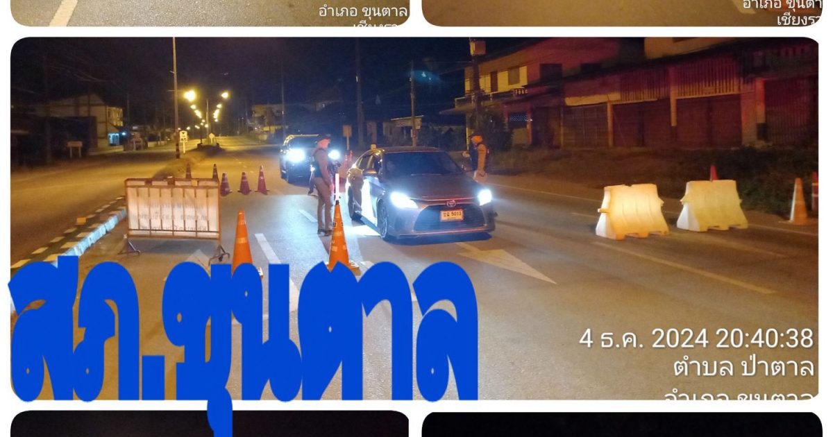 วันที่ 4 ธันวาคม 2567 เวลา 20.01-23.00 น.โดยการอำนวยการของพ.ต.ท.เทพบดินทร์ โพธิศาสตร์ รองผกก.สส.สภ.ขุนตาล รรท.ผกก.สภ.ขุนตาลโดยการควบคุมของพ.ต.ท.ณัฐพงษ์ คชสาร รองผกก.สอบสวน สภ.ขุนตาล รรท.รองผกก.ป.สภ.ขุนตาล พ.ต.ท.รุ่ง สุวรรณฉัตรศิริ สวป.สภ.ขุนตาล ร.ต.อ.ปรีชา ก๋าคำ รอง.สวป.สภ.ขุนตาล ปฏิบัติหน้าที่ร้อยเวร 20 หน.ชป.พร้อมด้วยสายตรวจรถยนต์ รวมกำลัง 3 นาย ว.43 จุดตรวจหน้าสภ.ขุนตาล(ตามแผนอินทนนท์ 4/2558)