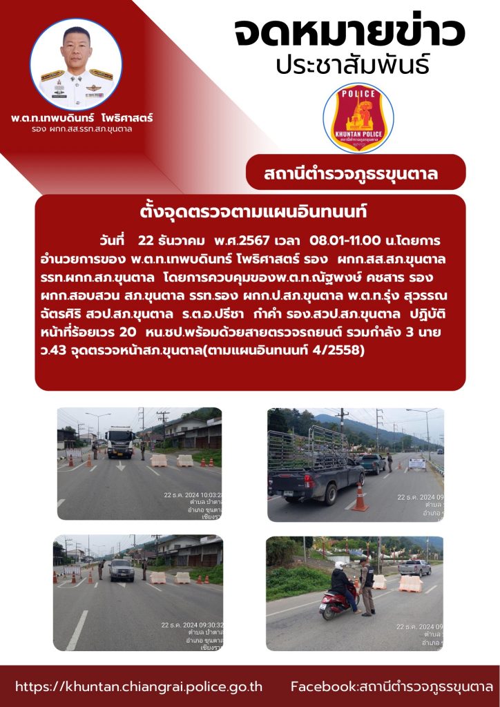 ตั้งจุดตรวจตามแผนอินทนนท์ 22 ธันวาคม 2567 โดย admin / ข่าวประชาสัมพันธ์,งานป้องกันปราบปราม ธ.ค.67 จำนวนคนดู: 31 FacebookFacebookXXLINELine