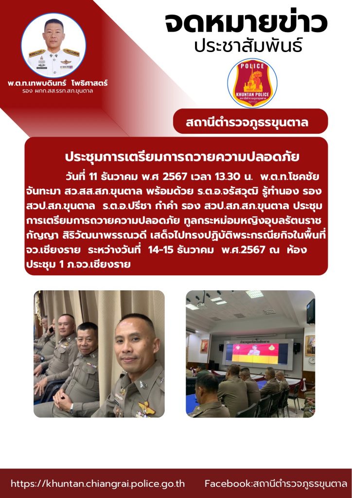 ประชุมการเตรียมการถวายความปลอดภัย 11 ธันวาคม 2567 โดย admin / ข่าวประชาสัมพันธ์,งานอำนวยการ ธ.ค.67 จำนวนคนดู: 29 FacebookFacebookXXLINELine