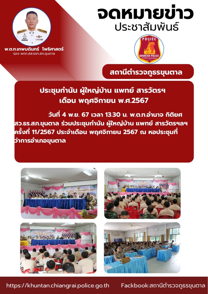 ประชุมกำนัน ผู้ใหญ่บ้าน แพทย์ สารวัตรฯ เดือน พฤศจิกายน พ.ศ.2567