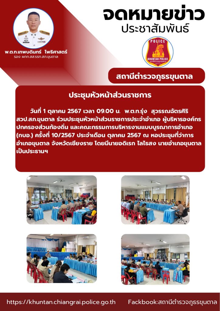 ประชุมหัวหน้าส่วนราชการประจำเดือน ตุลาคม 2567