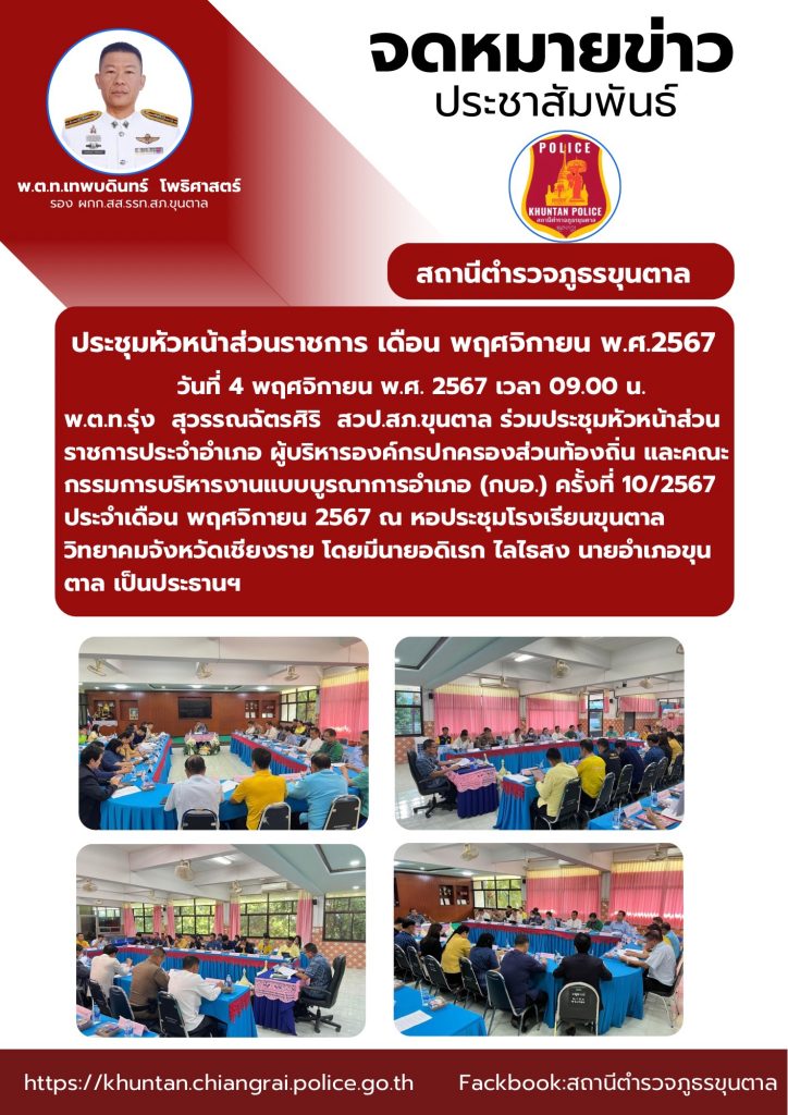 ประชุมหัวหน้าส่วนราชการ เดือน พฤศจิกายน พ.ศ.2567