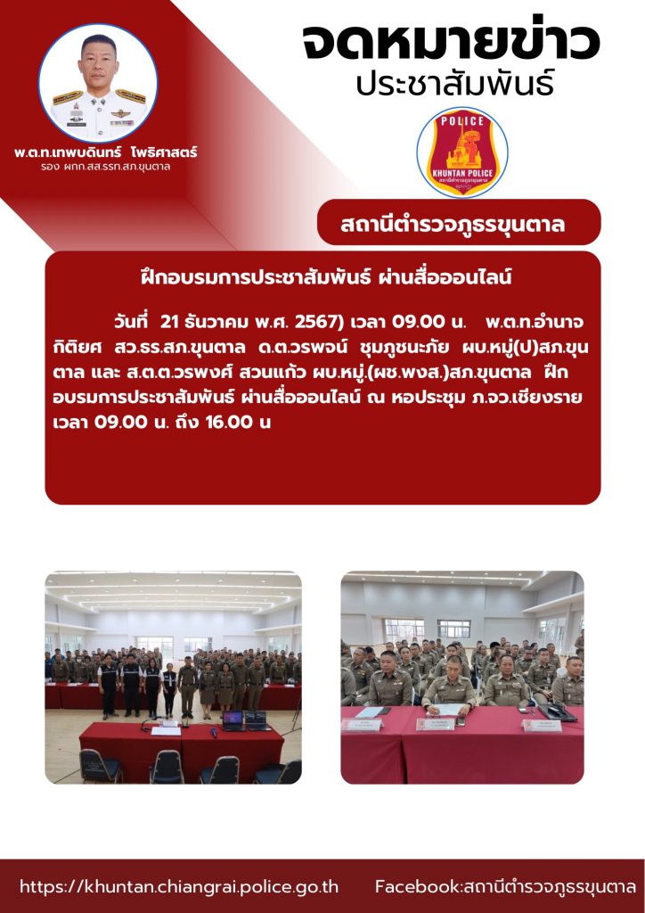 ฝึกอบรมการประชาสัมพันธ์ ผ่านสื่อออนไลน์ 21 ธันวาคม 2567 โดย admin / ข่าวประชาสัมพันธ์,งานอำนวยการ ธ.ค.67 จำนวนคนดู: 31 FacebookFacebookXXLINELine