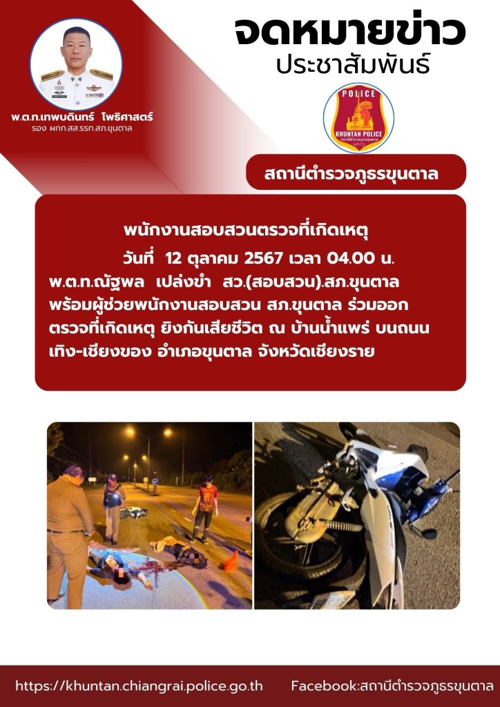 พนักงานสอบสวนตรวจที่เกิดเหตุ 13 ตุลาคม 2567 โดย admin / งาานสอบสวน ต.ค.67 จำนวนคนดู: 44 FacebookFacebookXXLINELine