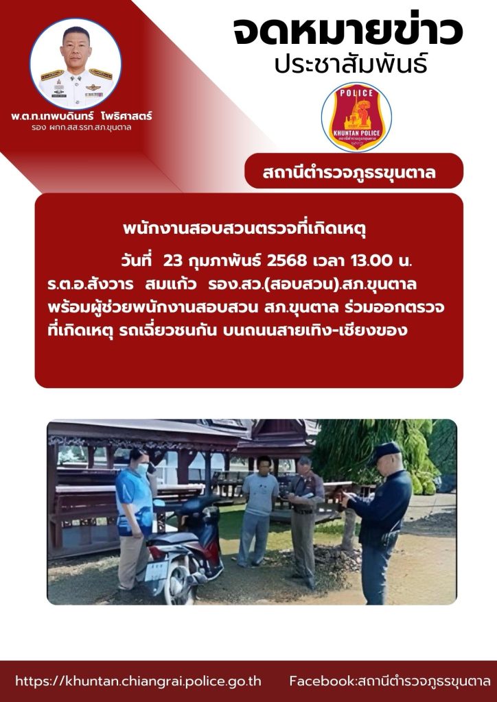 พนักงานสอบสวนตรวจที่เกิดเหตุ 23 กุมภาพันธ์ 2568 โดย admin / งาานสอบสวน ก.พ.68 จำนวนคนดู: 16 FacebookFacebookXXLINELine