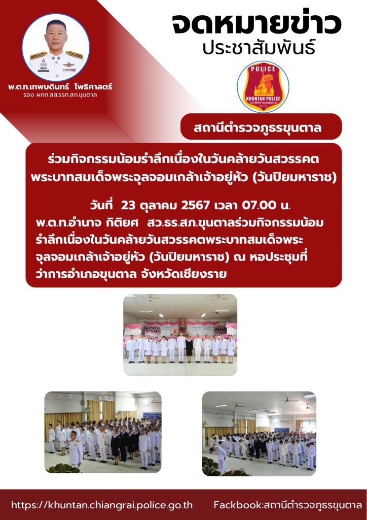 ร่วมกิจกรรมน้อมรำลึกเนื่องในวันคล้ายวันสวรรคตพระบาทสมเด็จพระจุลจอมเกล้าเจ้าอยู่หัว (วันปิยมหาราช)