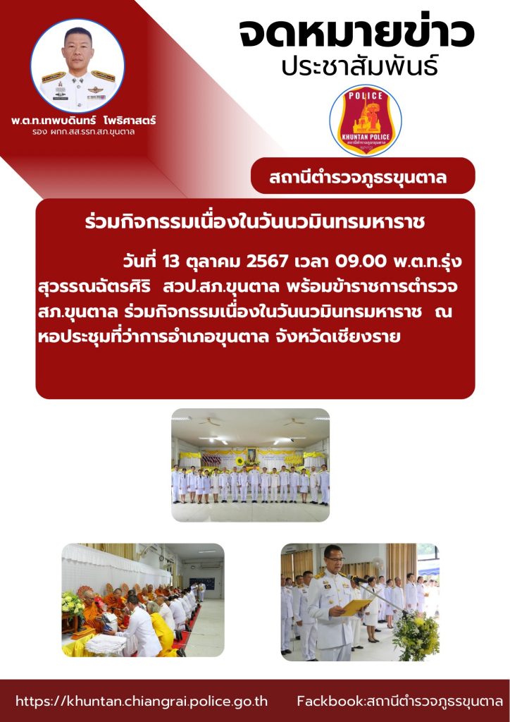 ร่วมกิจกรรมเนื่องในวันนวมินทรมหาราช 13 ตุลาคม 2567 โดย admin / ข่าวประชาสัมพันธ์,งานอำนวยการ ต.ค.67 จำนวนคนดู: 32 FacebookFacebookXXLINELine