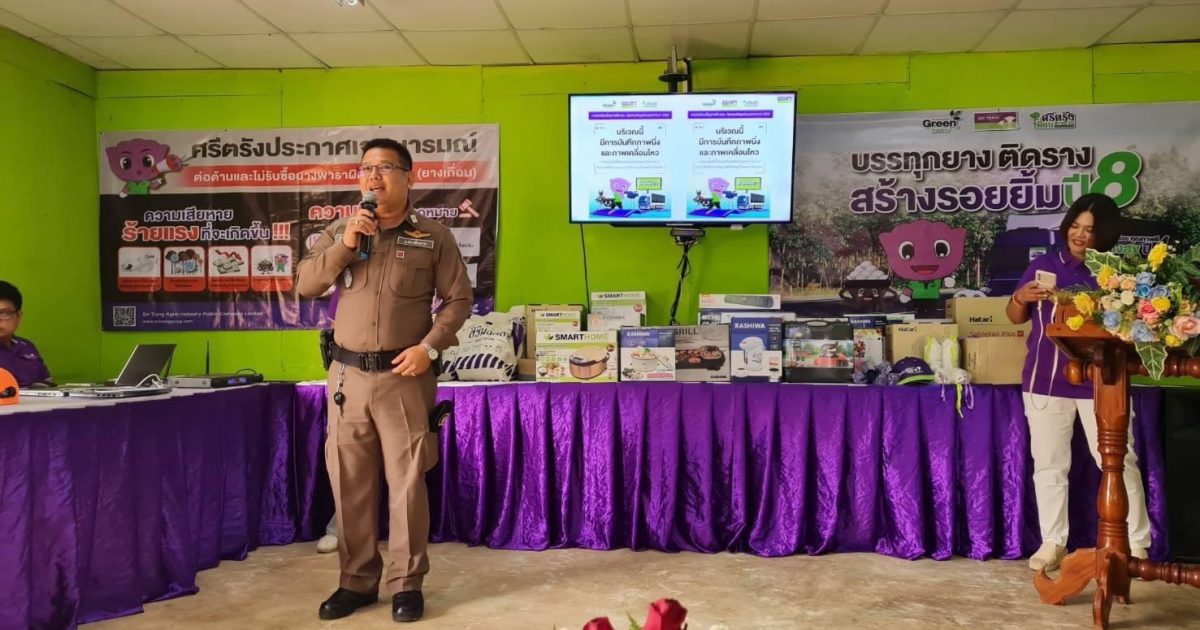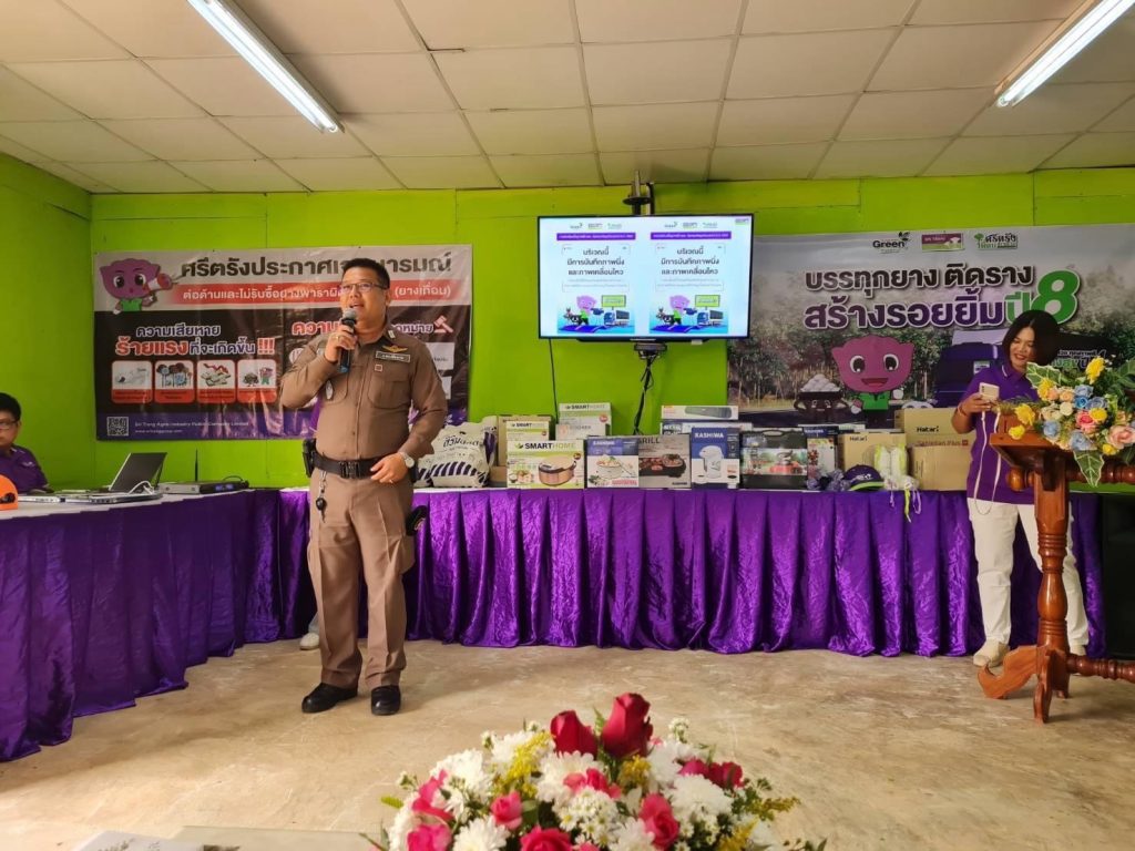 กิจกรรมโครงการบรรทุกยาง ติดราง สร้างรอยยิ้ม ณ บริษัทศรีตรังแอโกรอินดัสทรี จำกัด (มหาชน) สาขาเชียงราย โดยมีว่าที่ร้อยตรีศราวุธ จันทวงศ์ รองผู้ว่าราชการจังหวัดเชียงราย เป็นประธานใน