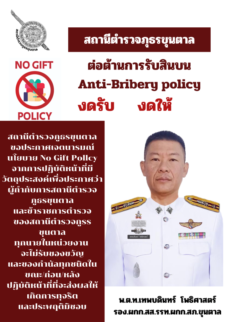 สถานีตำรวจภูธรขุนตาล   “งดให้  งดรับ”   ของขวัญ รวมถึงผลประโยชน์ผลประโยชน์อื่นใด