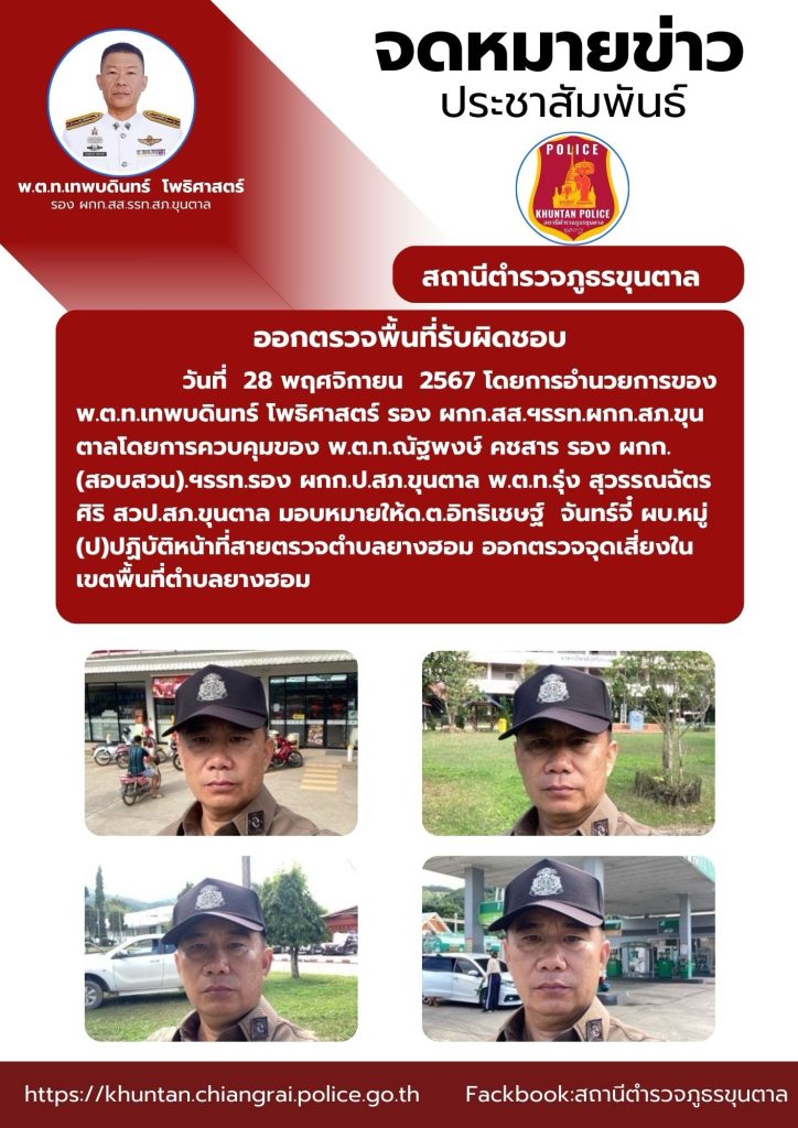 สายตรวจตำบลยางฮอมออกตรวจจุดเสี่ยงในเขตพื้นที่ตำบลยางฮอม
