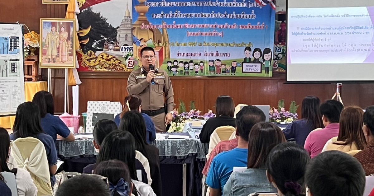 วันที่ 15 มีนาคม 2567 เวลา 09.00 น.พ.ต.ท.รุ่ง สุวรรณฉัตรศิริ สวป.สภ.ขุนตาล ร่วมกับเจ้าหน้าที่เทศบาลตำบลต้า ในการอบรมเจ้าหน้าที่ประจำจุดเลือกตั้งการเลือกตั้งซ่อม ณ เทศบาลตำบลต้า