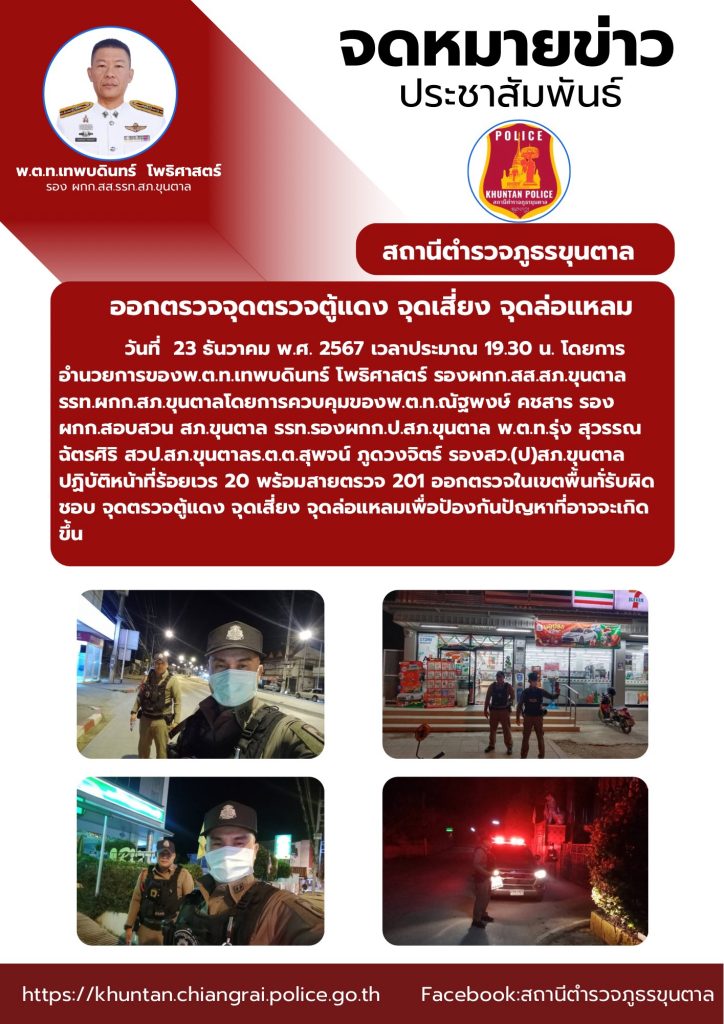 ออกตรวจจุดตรวจตู้แดง จุดเสี่ยง จุดล่อแหลม 23 ธันวาคม 2567 โดย admin / ข่าวประชาสัมพันธ์,งานป้องกันปราบปราม ธ.ค.67 จำนวนคนดู: 44 FacebookFacebookXXLINELine