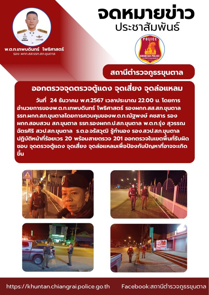 ออกตรวจจุดตรวจตู้แดง จุดเสี่ยง จุดล่อแหลม 25 ธันวาคม 2567 โดย admin / ข่าวประชาสัมพันธ์,งานป้องกันปราบปราม ธ.ค.67 จำนวนคนดู: 42 FacebookFacebookXXLINELine