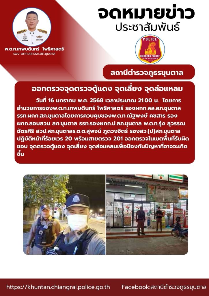 ออกตรวจจุดตรวจตู้แดง จุดเสี่ยง จุดล่อแหลม 16 มกราคม 2568 โดย admin / งานป้องกันปราบปราม ม.ค 68 จำนวนคนดู: 17 FacebookFacebookXXLINELine