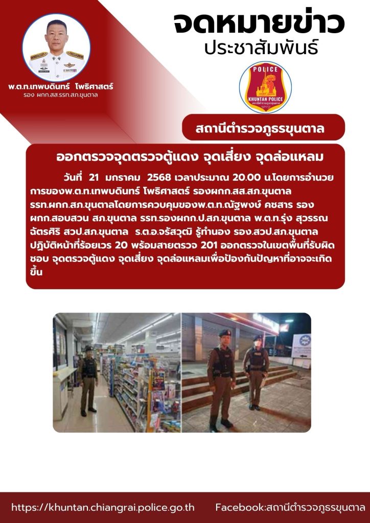 ออกตรวจจุดตรวจตู้แดง จุดเสี่ยง จุดล่อแหลม 21 มกราคม 2568 โดย admin / งานป้องกันปราบปราม ม.ค 68 จำนวนคนดู: 18 FacebookFacebookXXLINELine