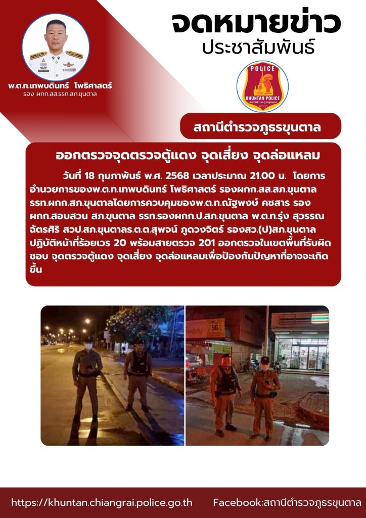 ออกตรวจจุดตรวจตู้แดง จุดเสี่ยง จุดล่อแหลม 18 กุมภาพันธ์ 2568 โดย admin / งานป้องกันปราบปราม ก.พ.68 จำนวนคนดู: 18 FacebookFacebookXXLINELine
