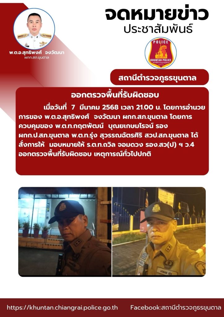 ออกตรวจจุดตรวจตู้แดง จุดเสี่ยง จุดล่อแหลม 7 มีนาคม 2568 โดย admin / งานป้องกันปราบปราม มี.ค.68 จำนวนคนดู: 28 FacebookFacebookXXLINELine