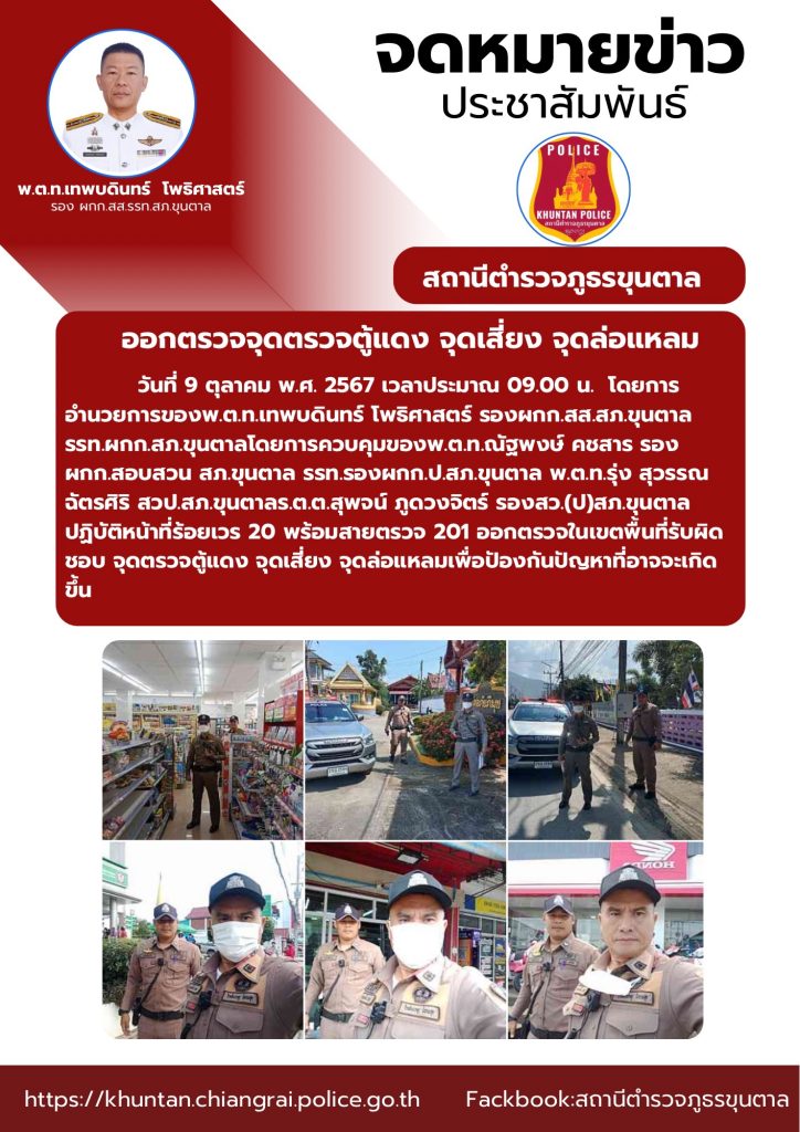 ออกตรวจจุดตรวจตู้แดง จุดเสี่ยง จุดล่อแหลม 9 ตุลาคม 2567 โดย admin / ข่าวประชาสัมพันธ์,งานป้องกันปราบปราม ต.ค.67 จำนวนคนดู: 33 FacebookFacebookXXLINELine