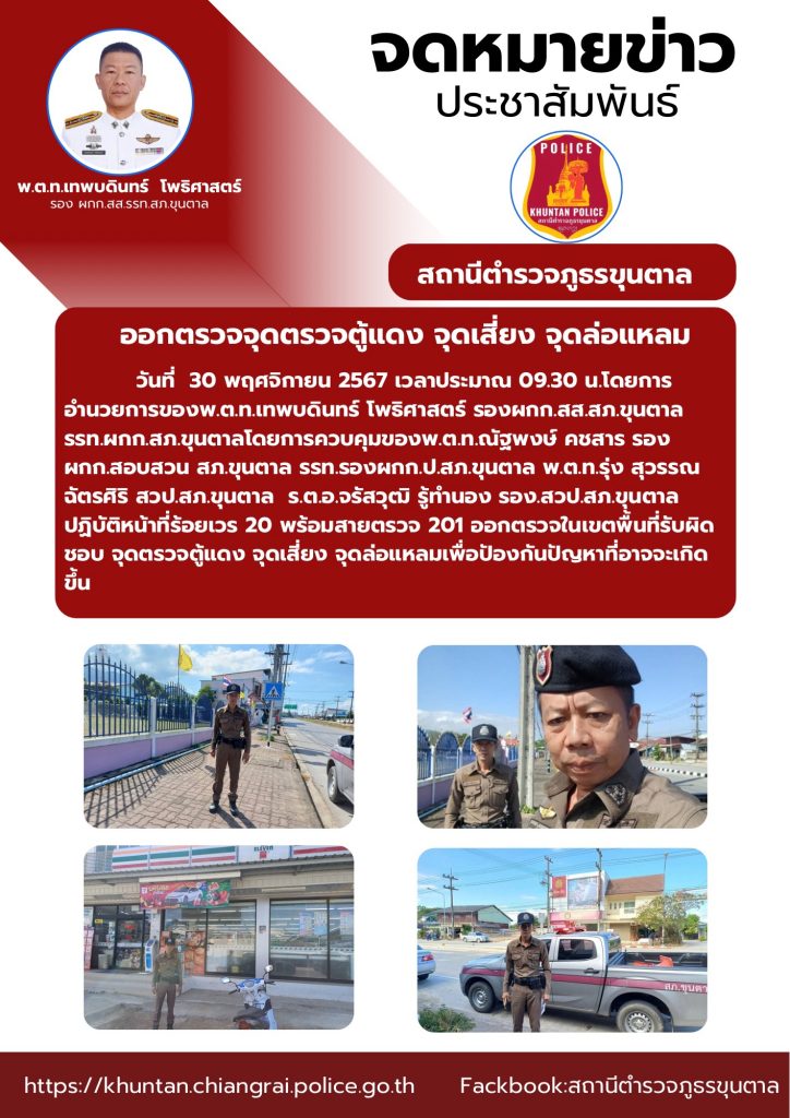 ออกตรวจจุดตรวจตู้แดง จุดเสี่ยง จุดล่อแหลม 30 พฤศจิกายน 2567 โดย admin / ข่าวประชาสัมพันธ์,งานป้องกันปราบปราม พ.ย.67 จำนวนคนดู: 41 FacebookFacebookXXLINELine