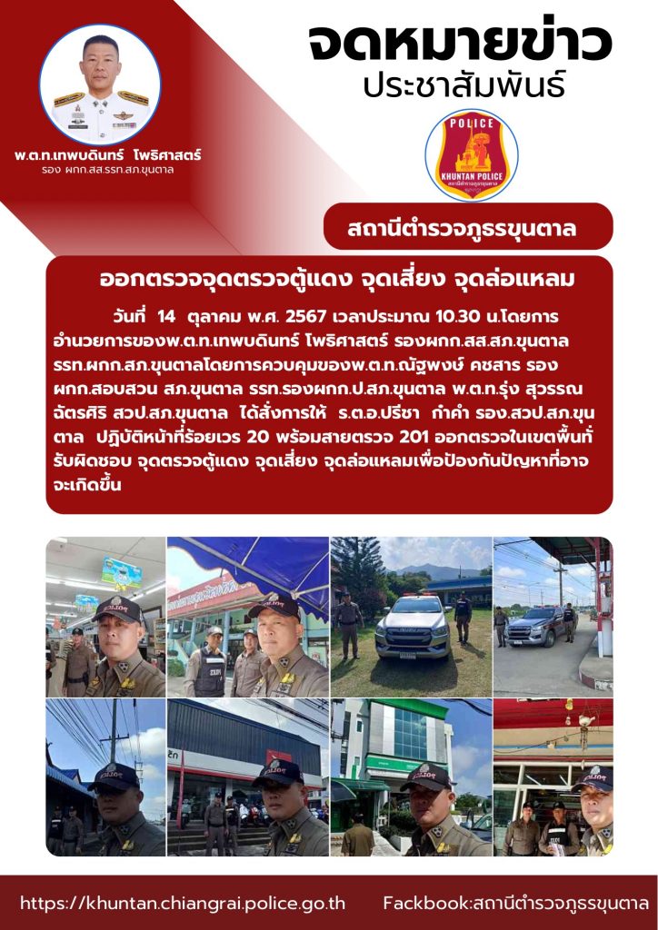 ออกตรวจจุดตรวจตู้แดง จุดเสี่ยง จุดล่อแหลม 14 ตุลาคม 2567 โดย admin / ข่าวประชาสัมพันธ์,งานป้องกันปราบปราม ต.ค.67 จำนวนคนดู: 34 FacebookFacebookXXLINELine