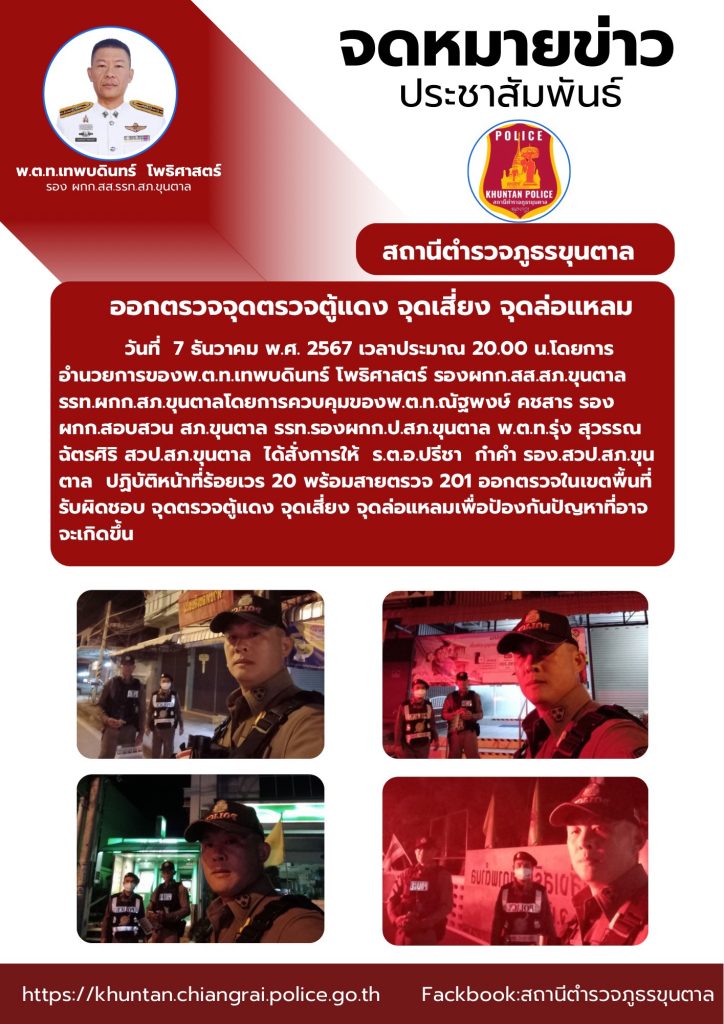 ออกตรวจจุดตรวจตู้แดง จุดเสี่ยง จุดล่อแหลม 7 ธันวาคม 2567 โดย admin / ข่าวประชาสัมพันธ์,งานป้องกันปราบปราม ธ.ค.67 จำนวนคนดู: 28 FacebookFacebookXXLINELine