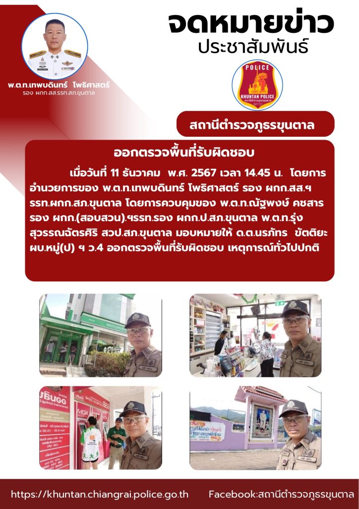 ออกตรวจจุดตรวจตู้แดง จุดเสี่ยง จุดล่อแหลม 11 ธันวาคม 2567 โดย admin / ข่าวประชาสัมพันธ์,งานป้องกันปราบปราม ธ.ค.67 จำนวนคนดู: 28 FacebookFacebookXXLINELine