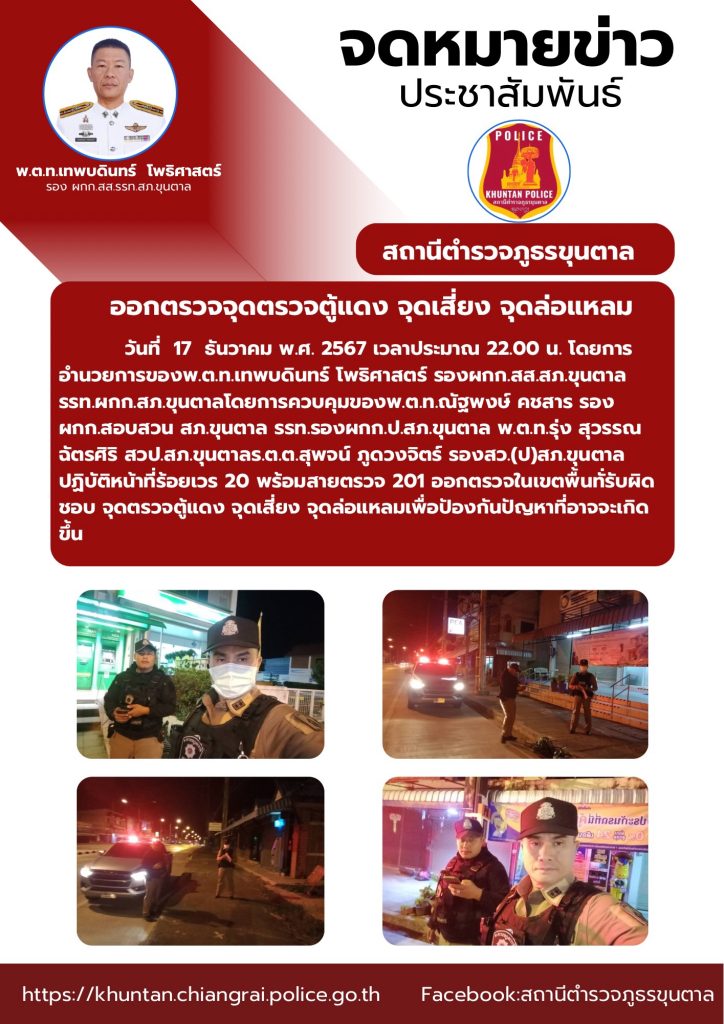 ออกตรวจจุดตรวจตู้แดง จุดเสี่ยง จุดล่อแหลม 17 ธันวาคม 2567 โดย admin / ข่าวประชาสัมพันธ์,งานป้องกันปราบปราม ธ.ค.67 จำนวนคนดู: 29 FacebookFacebookXXLINELine