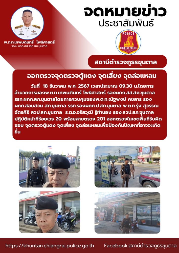ออกตรวจจุดตรวจตู้แดง จุดเสี่ยง จุดล่อแหลม 18 ธันวาคม 2567 โดย admin / ข่าวประชาสัมพันธ์,งานป้องกันปราบปราม ธ.ค.67 จำนวนคนดู: 17 FacebookFacebookXXLINELine