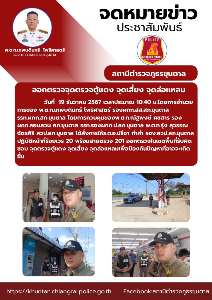 ออกตรวจจุดตรวจตู้แดง จุดเสี่ยง จุดล่อแหลม 19 ธันวาคม 2567 โดย admin / ข่าวประชาสัมพันธ์,งานป้องกันปราบปราม ธ.ค.67 จำนวนคนดู: 41 FacebookFacebookXXLINELine