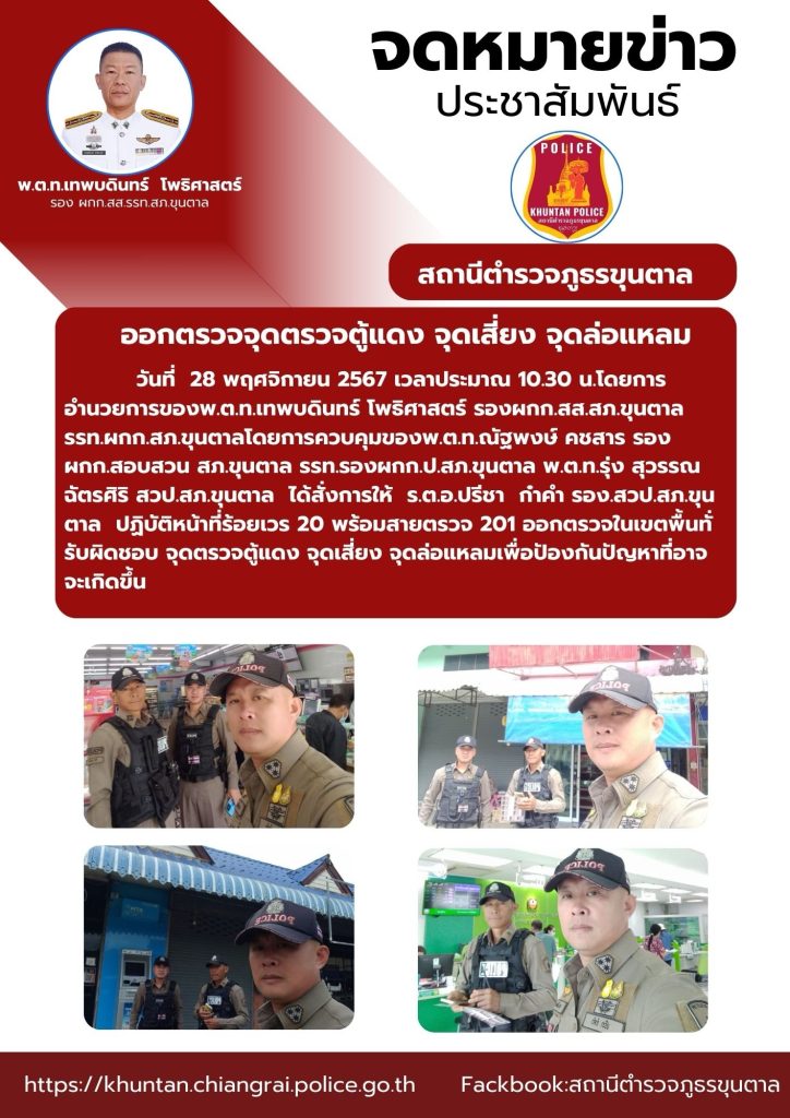 ออกตรวจจุดเสี่ยง จุดล่อแหลม เพื่อป้องกันเหตุอาชญากรรมต่างๆในเขตพื้นที่รับผิดชอบ