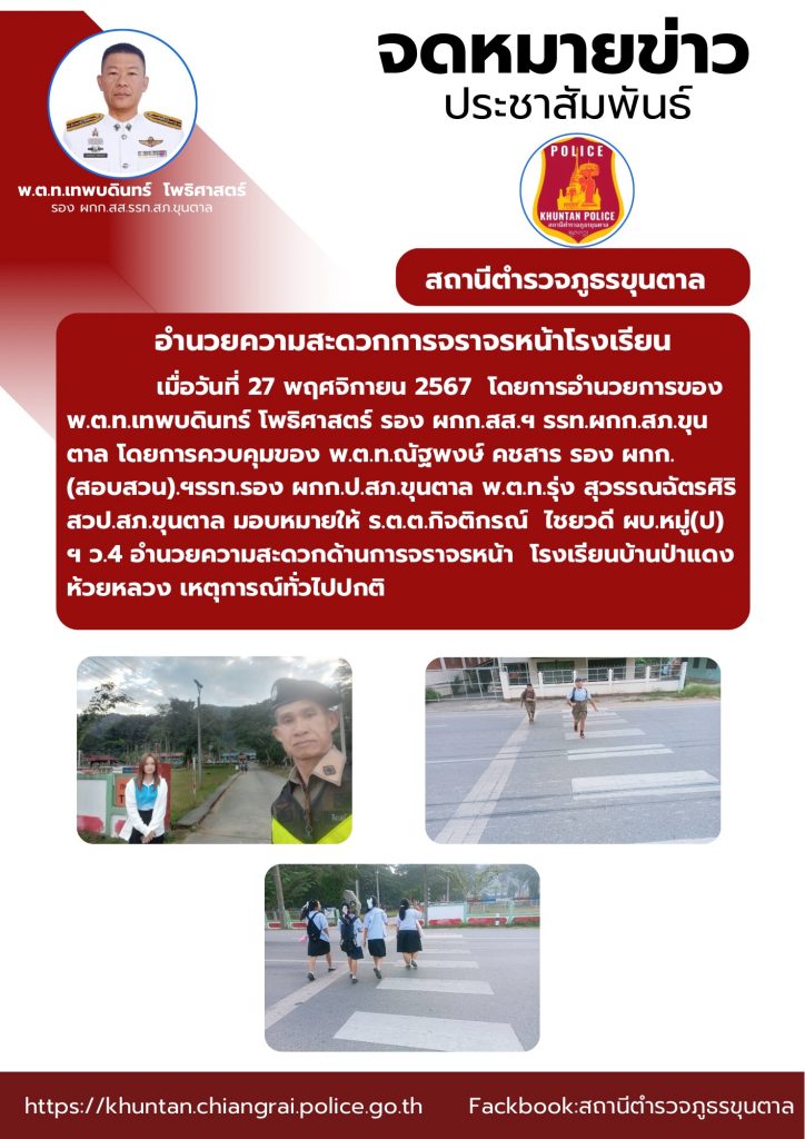 อำนวยความสะดวกการจราจรหน้าโรงเรียน 27 พฤศจิกายน 2567 โดย admin / ข่าวประชาสัมพันธ์,งานจราจร พ.ย.67 จำนวนคนดู: 35 FacebookFacebookXXLINELine