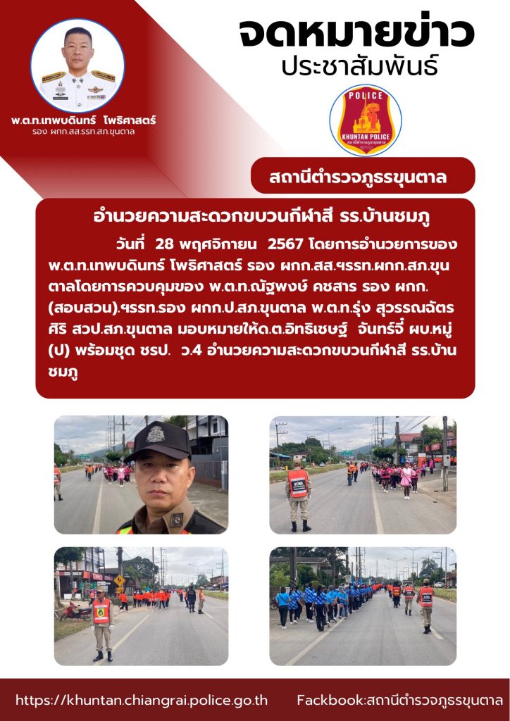 อำนวยความสะดวกขบวนกีฬาสี รร.บ้านชมภู 28 พฤศจิกายน 2567 โดย admin / ข่าวประชาสัมพันธ์,งานจราจร พ.ย.67 จำนวนคนดู: 23 FacebookFacebookXXLINELine
