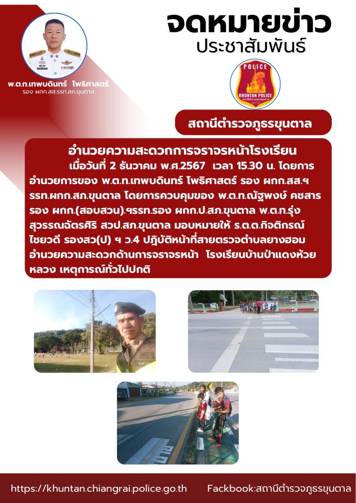 อำนวยความสะดวกด้านการจราจรหน้าโรงเรียน 2 ธันวาคม 2567 โดย admin / ข่าวประชาสัมพันธ์,งานจราจร ธ.ค.67 จำนวนคนดู: 36 FacebookFacebookXXLINELine