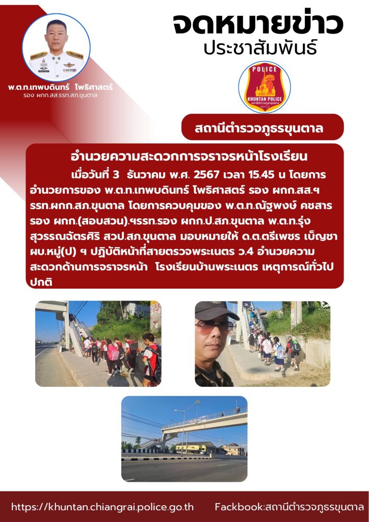 อำนวยความสะดวกด้านการจราจรหน้าโรงเรียน 3 ธันวาคม 2567 โดย admin / ข่าวประชาสัมพันธ์,งานจราจร ธ.ค.67 จำนวนคนดู: 22 FacebookFacebookXXLINELine
