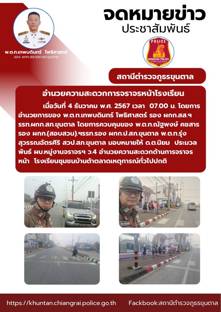 อำนวยความสะดวกด้านการจราจรหน้าโรงเรียน 4 ธันวาคม 2567 โดย admin / ข่าวประชาสัมพันธ์,งานจราจร ธ.ค.67 จำนวนคนดู: 28 FacebookFacebookXXLINELine