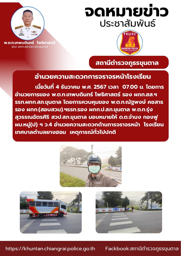 อำนวยความสะดวกด้านการจราจรหน้าโรงเรียน 4 ธันวาคม 2567 โดย admin / ข่าวประชาสัมพันธ์,งานจราจร ธ.ค.67 จำนวนคนดู: 26 FacebookFacebookXXLINELine