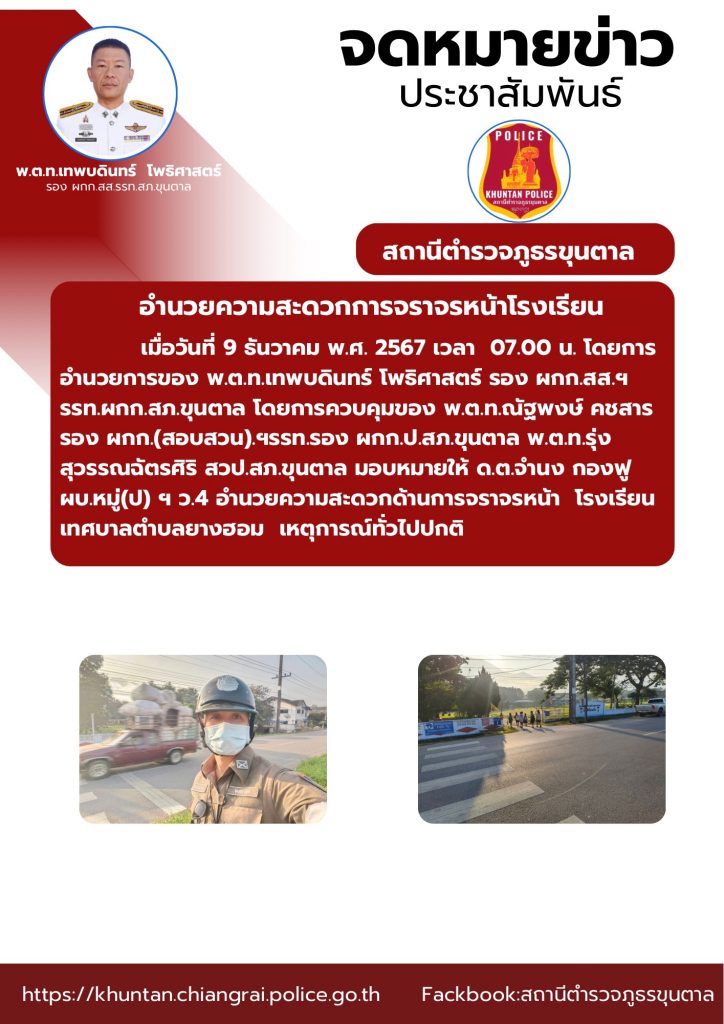 อำนวยความสะดวกด้านการจราจรหน้าโรงเรียน 9 ธันวาคม 2567 โดย admin / ข่าวประชาสัมพันธ์,งานจราจร ธ.ค.67 จำนวนคนดู: 37 FacebookFacebookXXLINELine