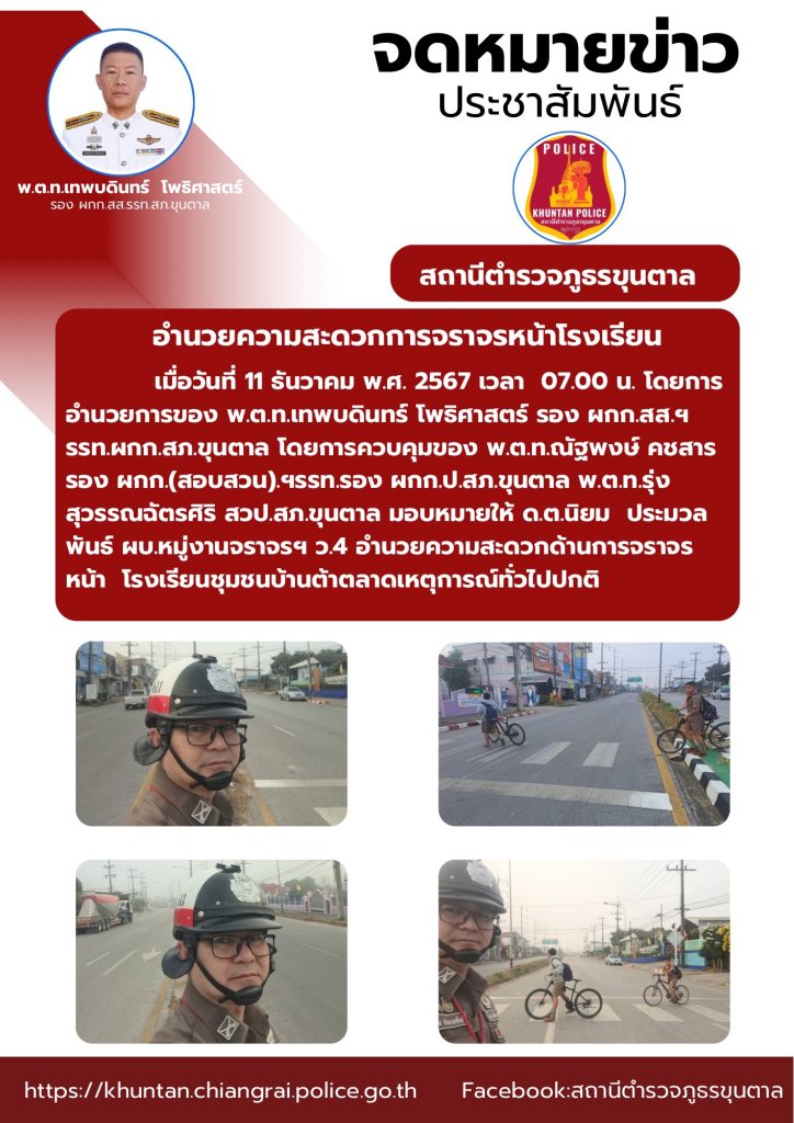 อำนวยความสะดวกด้านการจราจรหน้าโรงเรียน 11 ธันวาคม 2567 โดย admin / ข่าวประชาสัมพันธ์,งานจราจร ธ.ค.67 จำนวนคนดู: 39 FacebookFacebookXXLINELine