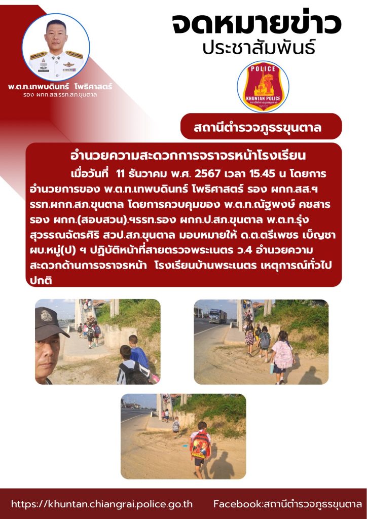อำนวยความสะดวกด้านการจราจรหน้าโรงเรียน 11 ธันวาคม 2567 โดย admin / ข่าวประชาสัมพันธ์,งานจราจร ธ.ค.67 จำนวนคนดู: 32 FacebookFacebookXXLINELine