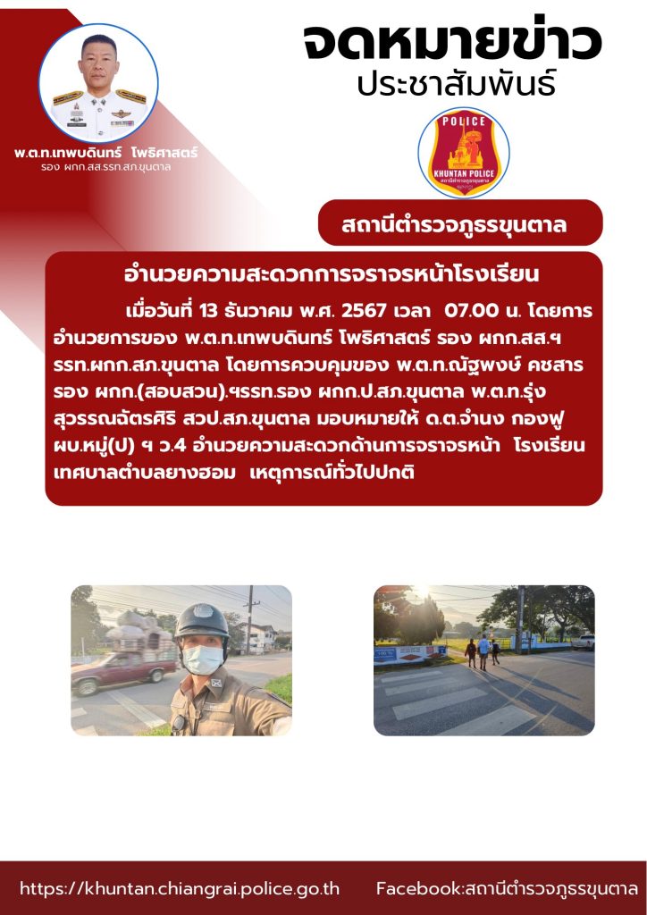 อำนวยความสะดวกด้านการจราจรหน้าโรงเรียน 13 ธันวาคม 2567 โดย admin / ข่าวประชาสัมพันธ์,งานจราจร ธ.ค.67 จำนวนคนดู: 31 FacebookFacebookXXLINELine