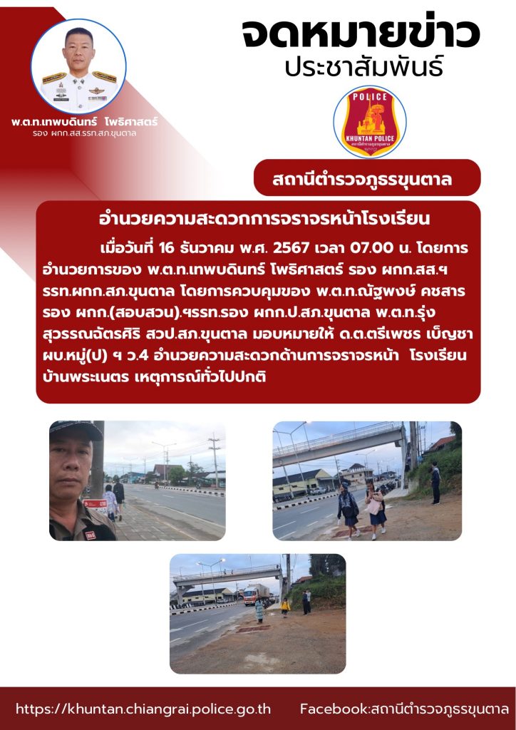 อำนวยความสะดวกด้านการจราจรหน้าโรงเรียน 16 ธันวาคม 2567 โดย admin / ข่าวประชาสัมพันธ์,งานจราจร ธ.ค.67 จำนวนคนดู: 33 FacebookFacebookXXLINELine