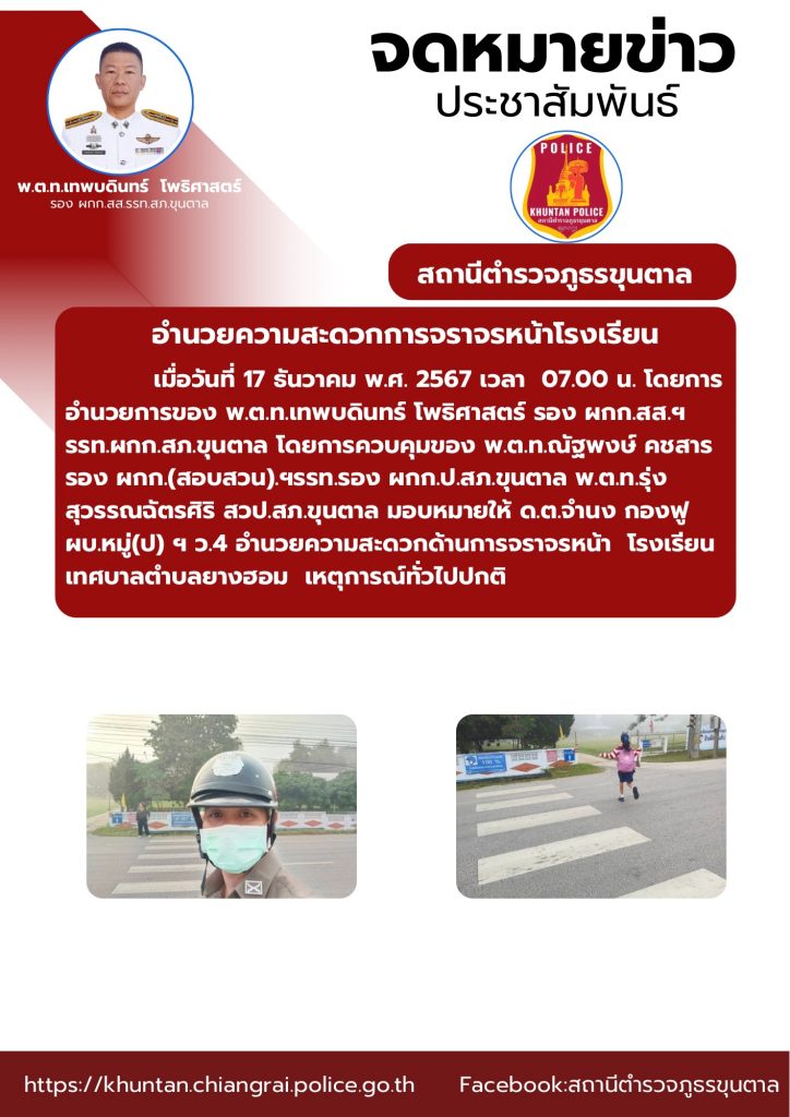 อำนวยความสะดวกด้านการจราจรหน้าโรงเรียน 17 ธันวาคม 2567 โดย admin / ข่าวประชาสัมพันธ์,งานจราจร ธ.ค.67 จำนวนคนดู: 39 FacebookFacebookXXLINELine